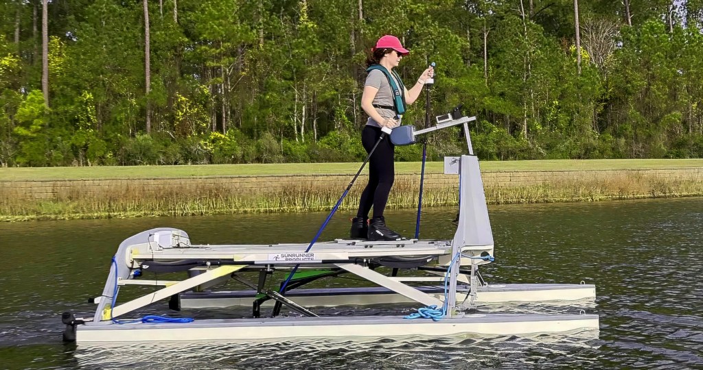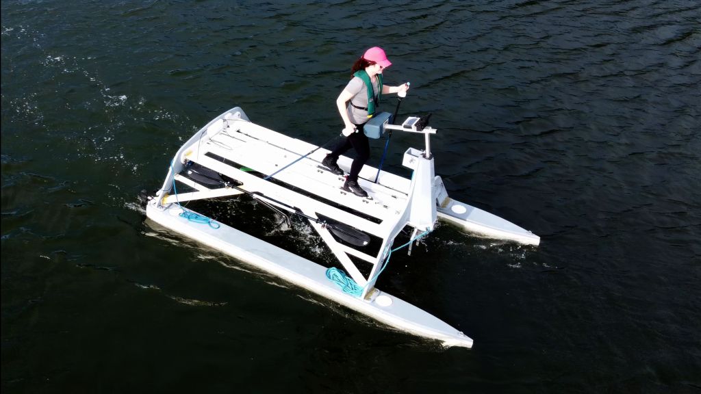 A Nordic-ski-inspired human-powered watercraft.